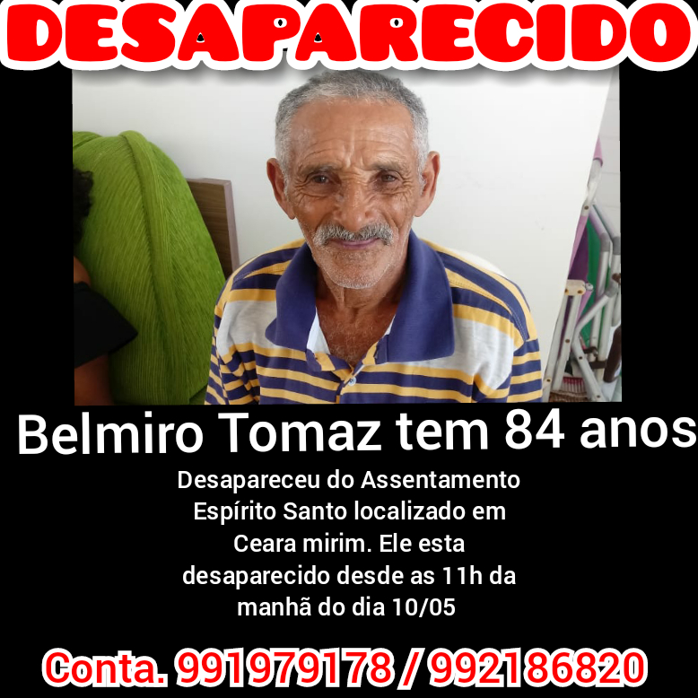 CEARÁ-MIRIM: DESAPARECIDO - AJUDEM A ENCONTRAR SEU BELMIRO TOMAZ