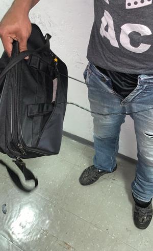 Além do dispositivo de gravação no tênis, que era alimentado por uma bateria na meia, Souza carregava uma bolsa com um monitor, em que verificava as gravações no momento em que elas eram feitas.