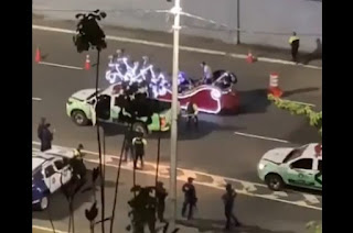 Deu ruim pro Papai Noel em Salvador", escreveu o rapaz que divulgou as imagens. Não há informações sobre o que aconteceu com o homem que conduzia o carro natalino, nem se o veículo foi apreendido.
